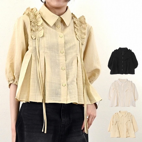 シアーミニフリンジジャガードラッフルカラークロップドブラウス