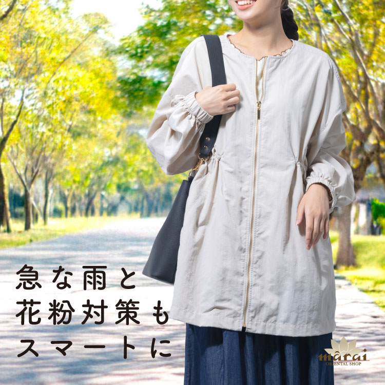 ジャケット レディース 撥水 花粉対策 花粉 大きいサイズ ゆったり 春 秋 ミドル丈 ノーカラー アウター 長袖 体型カバー き...