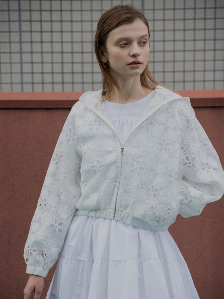 刺繍レースパーカー