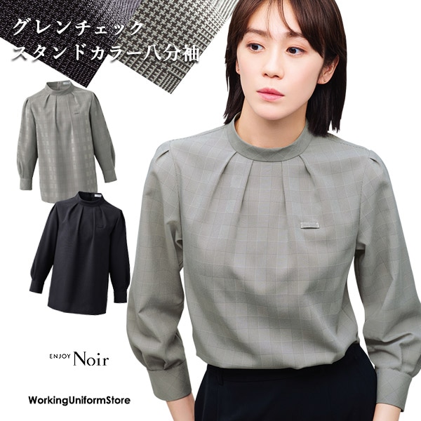 サービス制服 八分袖スタンドカラーブラウス NWB075 グレンチェック ホテル ノワール