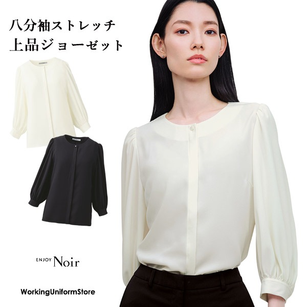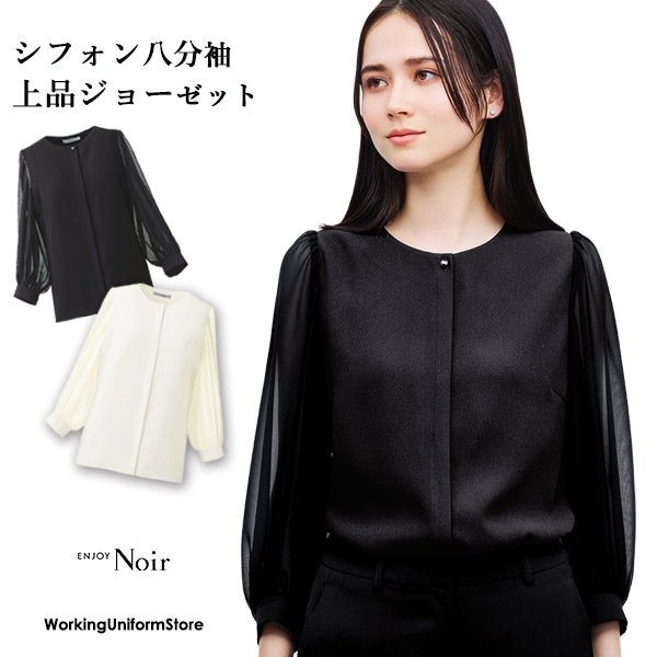 ホテル/サービス制服 八分袖ブラウス NWB079 プレミアムジョーゼット ノワール