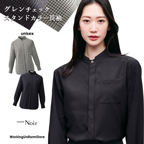 サービス制服 男女兼用長袖スタンドカラーシャツ NWY077 グレンチェック ホテル ノワール