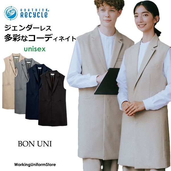 ボンオフィス ホテル制服 男女兼用ロングベスト BUV1200 ファインクロス