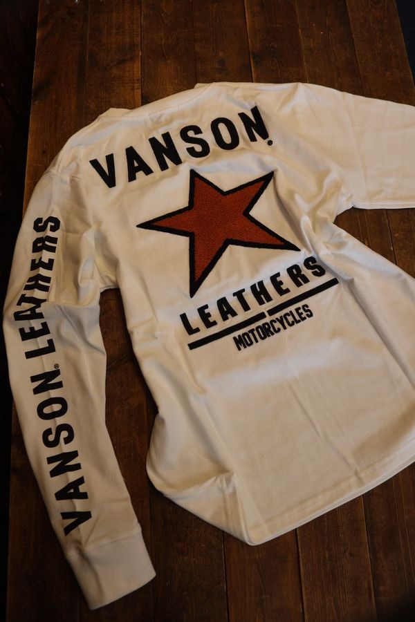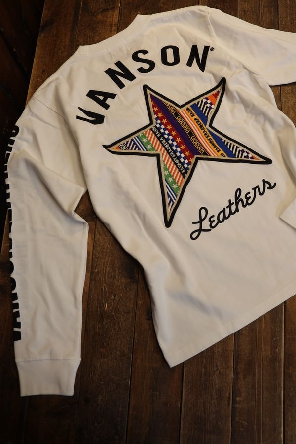 VANSON バンソンNVLT-2417 天竺ロンTee ワンスター刺繍長袖Tシャツ オフホワイト