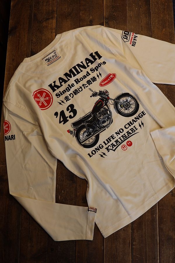 エフ商会 カミナリ KMLT-228 43年間 SR400 SR500 単気筒 長袖Tシャツ ロンTee オフホワイト