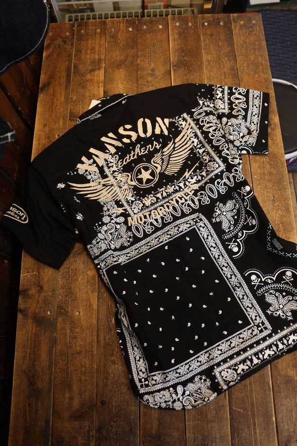 VANSON バンソン NVSS-2405 レザー使い50周年ZIPシャツ ブラックツイル