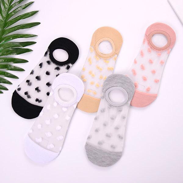 シースルー ソックス ドット柄 5色セット くるぶし丈 ポリエステル 通気性 ヒール 立体仕立て レディース シアー スニーカー ...