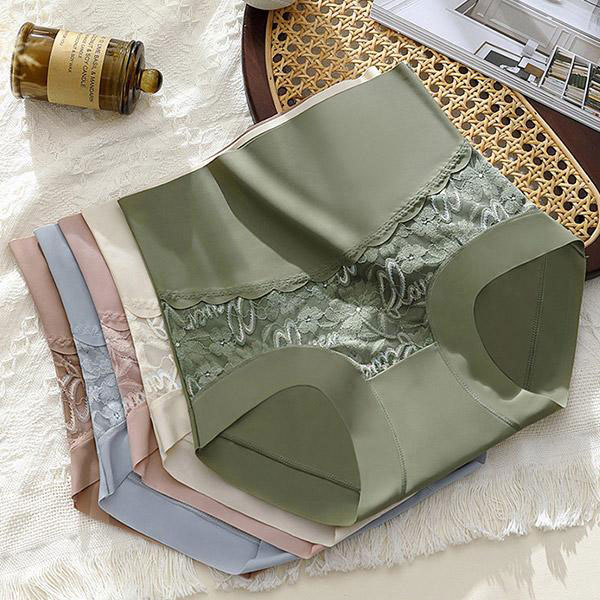 レディース シームレスショーツ 接触冷感 アイスシルク 涼しい ハイウエスト お腹引き締め レース 抗菌 薄手 通気性 蒸れにくい...