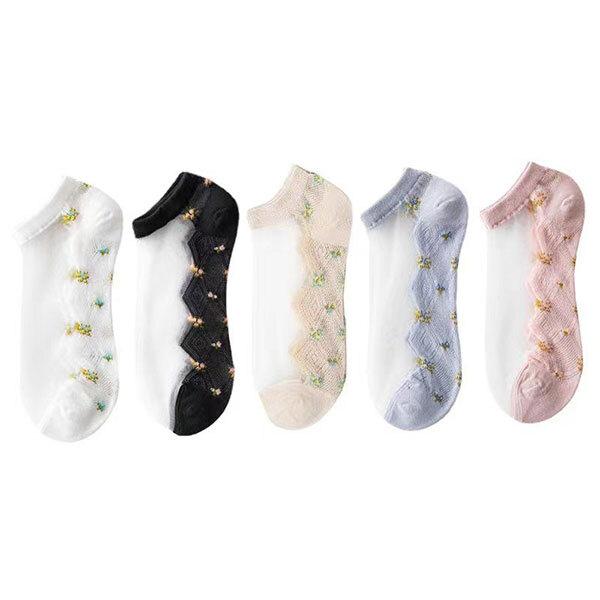 レディース シースルー ソックス 5色セット 花柄 くるぶし丈 シアー アンクルソックス スニーカーソックス かわいい