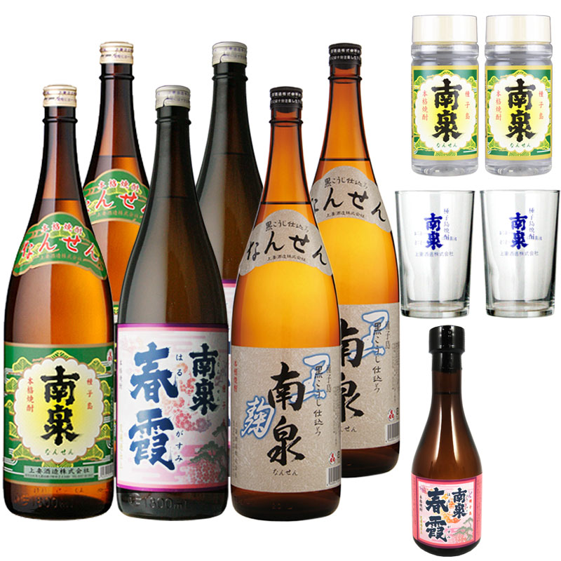 南泉 飲み比べ 1800ml × 6本・南泉春霞 300ml・グラス付き 芋焼酎 種子島 上妻酒造
