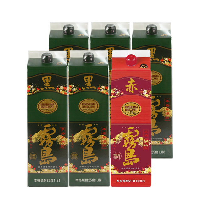 【送料無料】霧島酒造 飲み比べセット 黒霧島パック5本 赤霧島パック1本 1800ml 計6本 芋焼酎