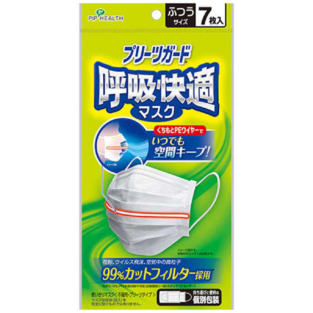 【不織布マスク】 プリーツガード 呼吸快適マスク 個別包装 ふつうサイズ 7枚入
