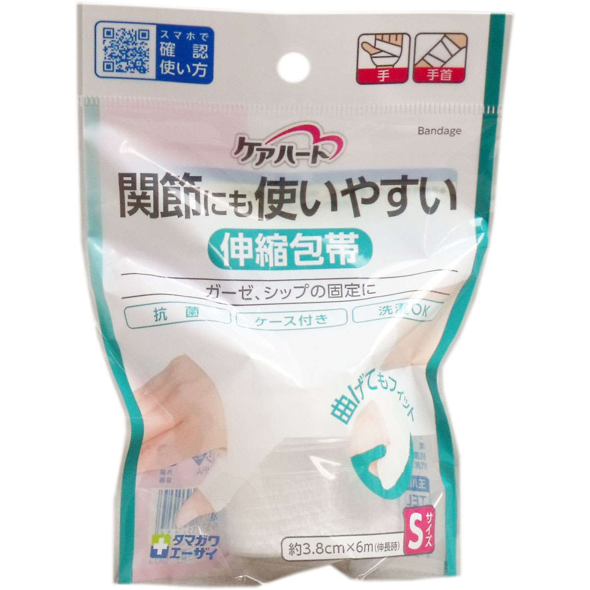 【包帯】 ケアハート 関節にも使いやすい 伸縮包帯 Sサイズ