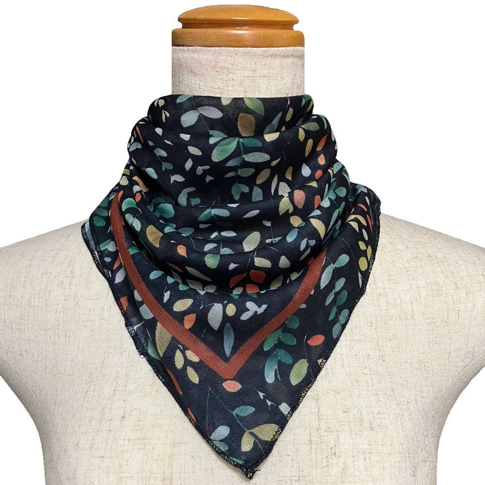 【気管切開】【喉頭摘出】【永久気管孔】 スクエアバンダナネックカバー:グリーンリーフ