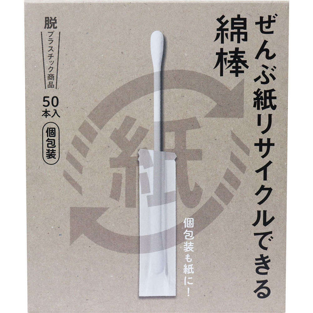 ぜんぶ紙リサイクルできる綿棒 個包装 50本入