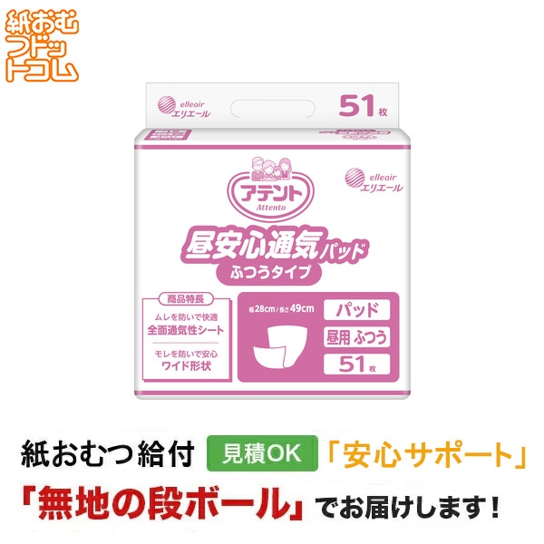 アテント 昼安心通気パッド ふつうタイプ 病院・施設用 51枚入 大人用紙おむつ 尿取りパッド