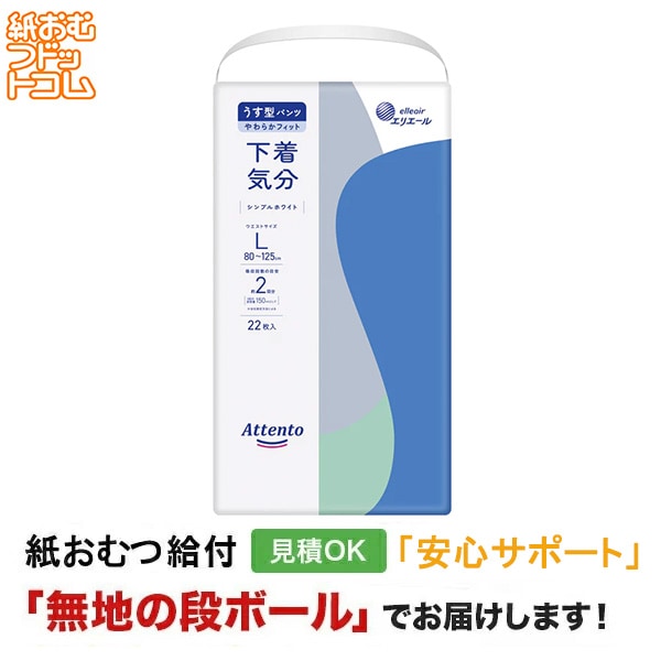 アテント うす型パンツ下着気分シンプルホワイト L 22枚 大人用紙おむつ