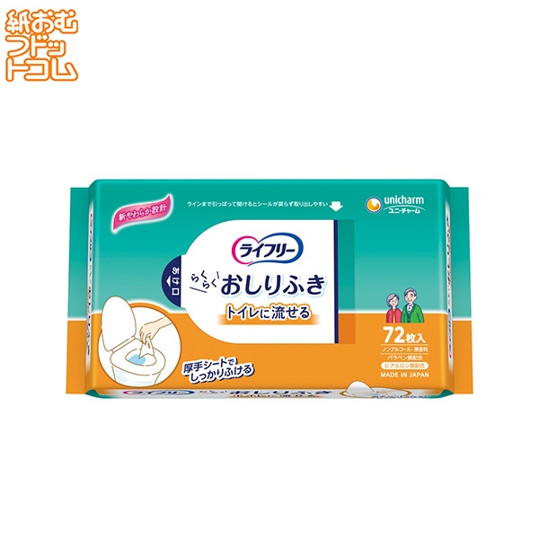 ライフリー おしりふき トイレに流せる 72枚