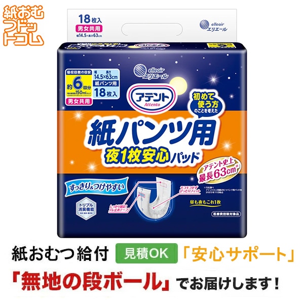 アテント 紙パンツ用尿取りパッドぴったり超安心 6回吸収 18枚入 大人用紙おむつ パンツ用パッド