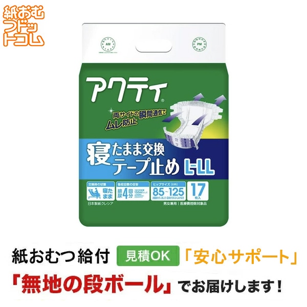 アクティ 寝たまま交換テープ止め L-LLサイズ 17枚 大人用紙おむつ テープ止めタイプ
