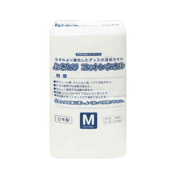 ふきとりコットンタオル M 100枚入 使い捨て 訪問美容・介護に最適