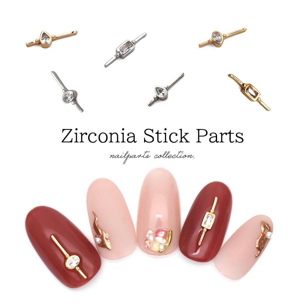 【ネコポス送料無料】ネイルパーツ ジルコニア付きスティックパーツ [ゴールド/シルバー]全3種 4個入り