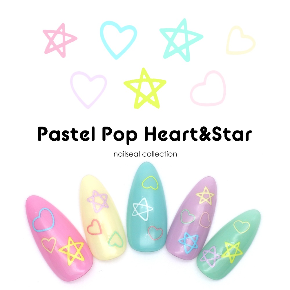 【ネコポス送料無料】ネイルシール パステルポップハート&スターシール [KO702]