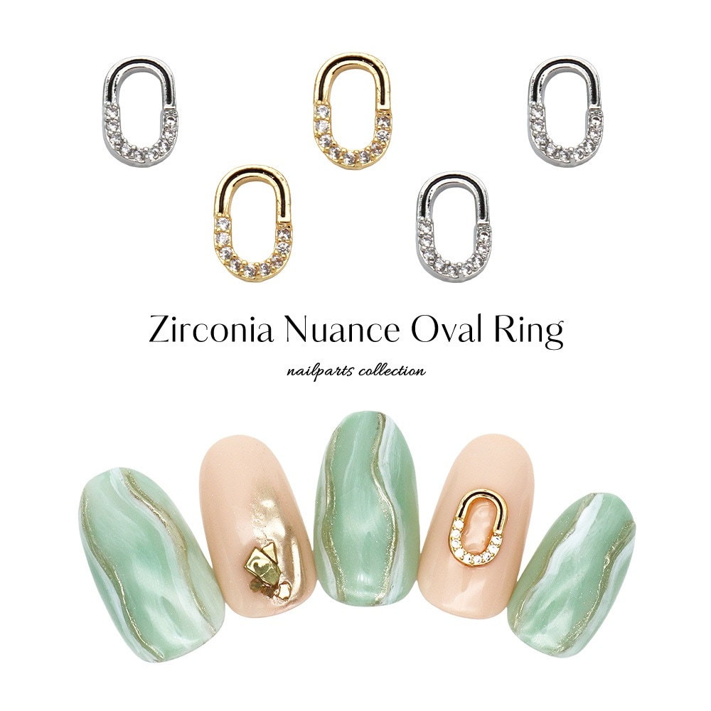 【ネコポス送料無料】ネイルパーツ ジルコニア製 ジルコニアニュアンスオーバルリングパーツ [ゴールド 金/シルバー 銀] 全2...