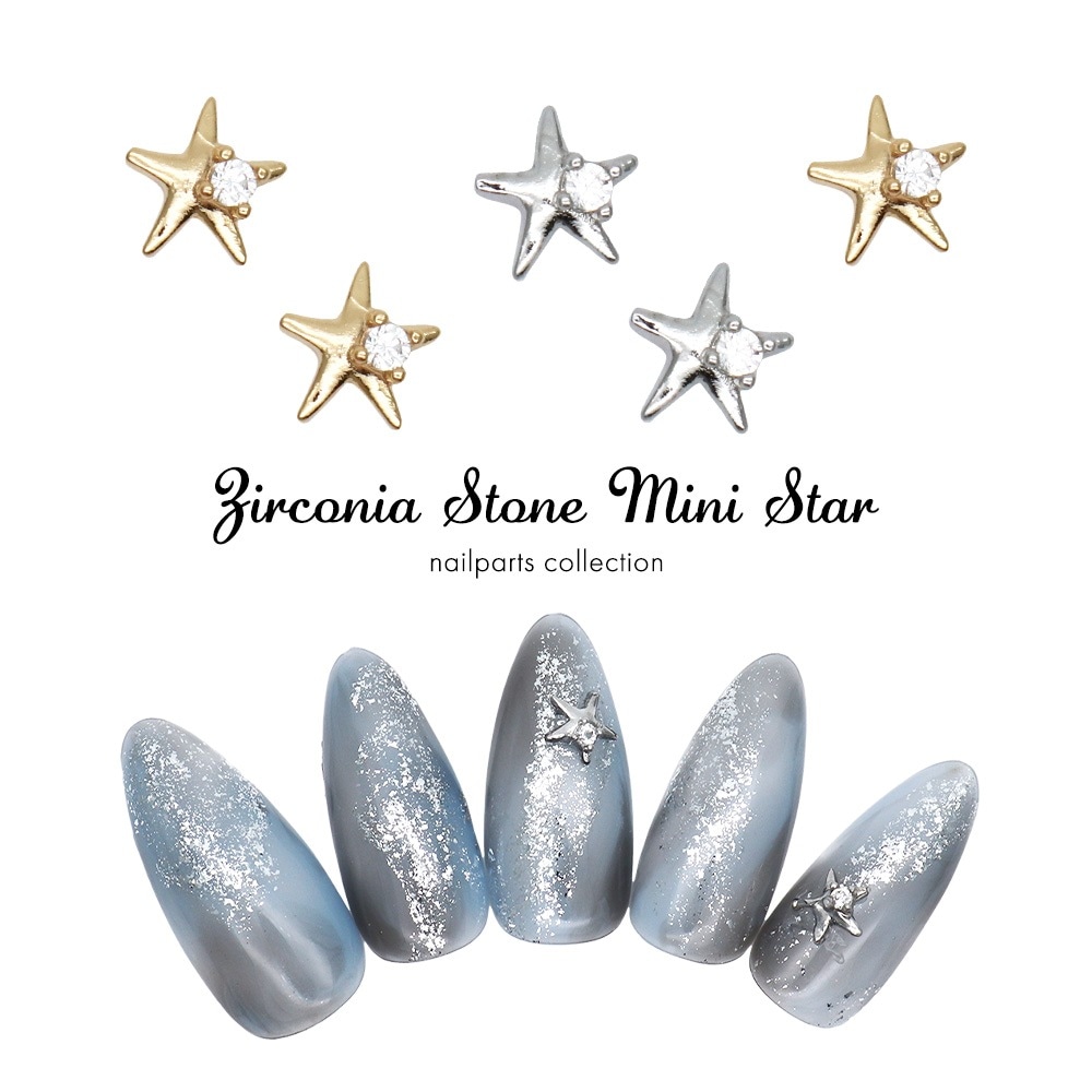 【ネコポス送料無料】ネイルパーツ ジルコニア製 ジルコニアストーン付きミニスターパーツ [ゴールド 金/シルバー 銀] 全2色...