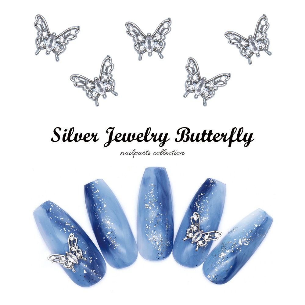 【ネコポス送料無料】ネイルパーツ ジルコニア製 シルバージュエリーバタフライパーツ 2個入り
