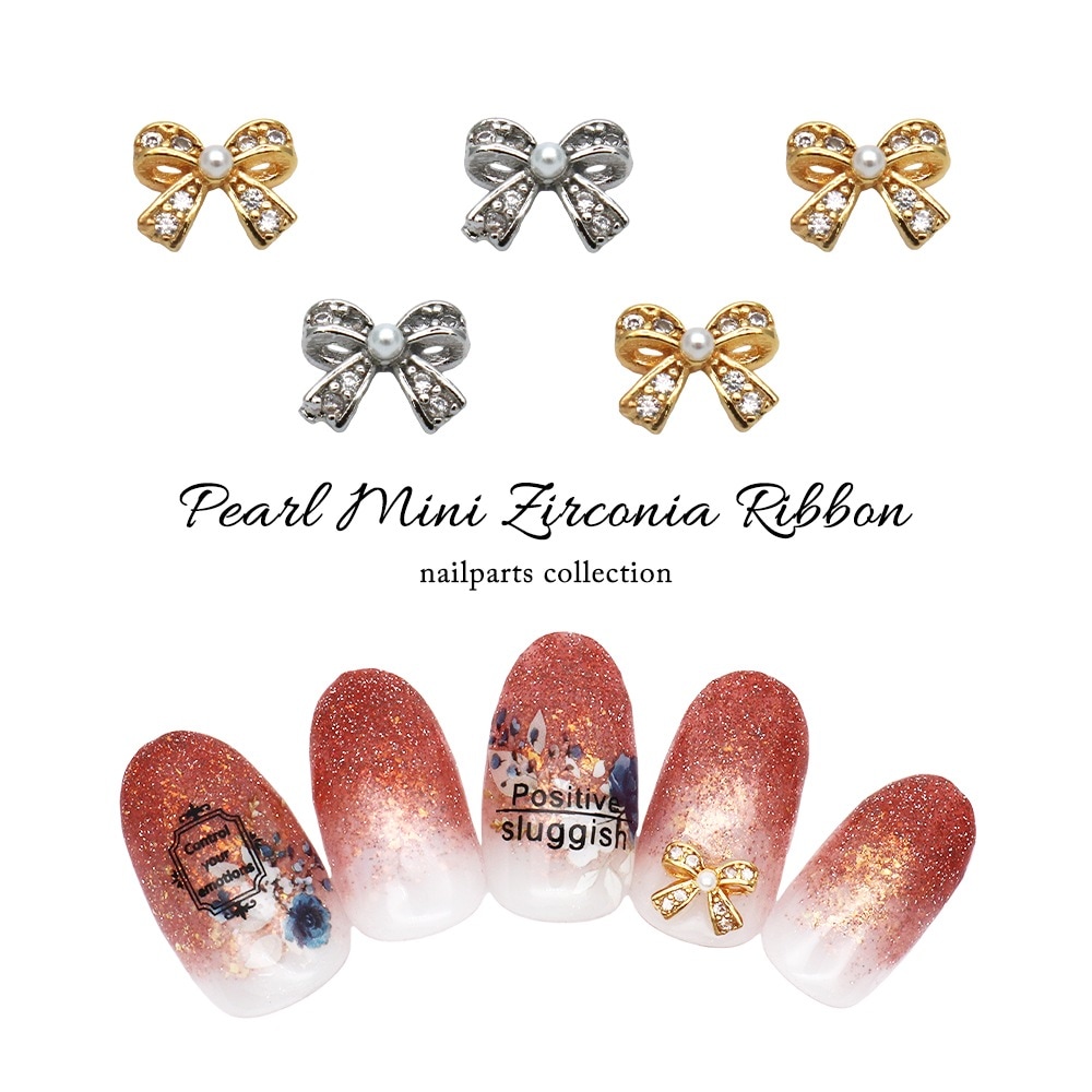 【ネコポス送料無料】ネイルパーツ ジルコニア製 パール付きミニジルコニアリボンパーツ [ゴールド 金/シルバー 銀] 全2色 2...