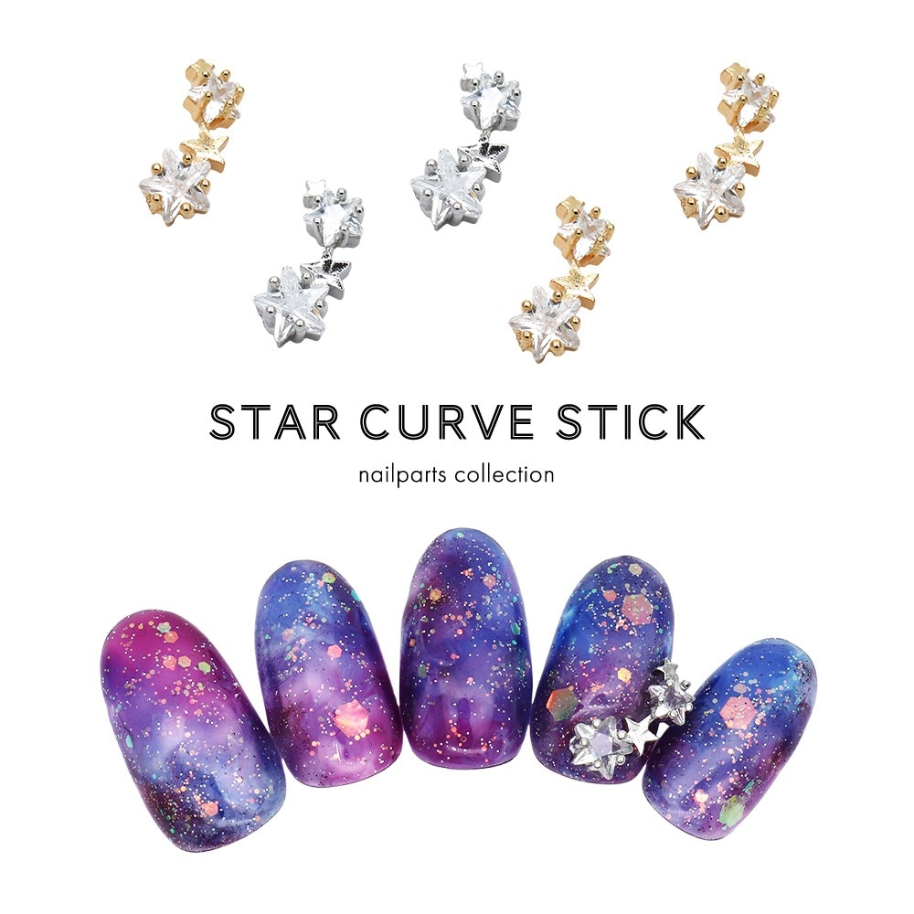【ネコポス送料無料】ネイルパーツ ジルコニア製 スターカーブスティックパーツ [ゴールド 金/シルバー 銀] 全2色 1個入り