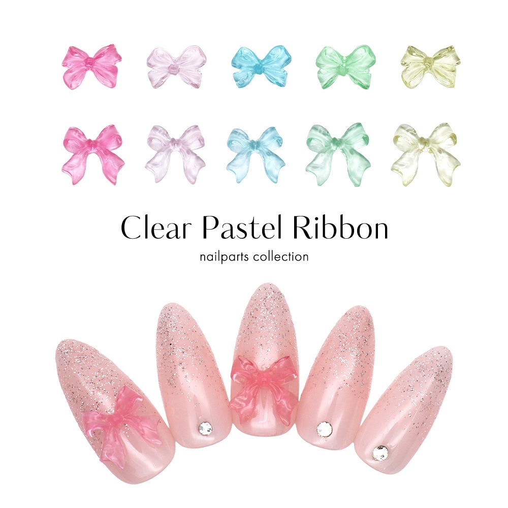 【ネコポス送料無料】ネイルパーツ クリアパステルリボンパーツ 全10種 10個入り