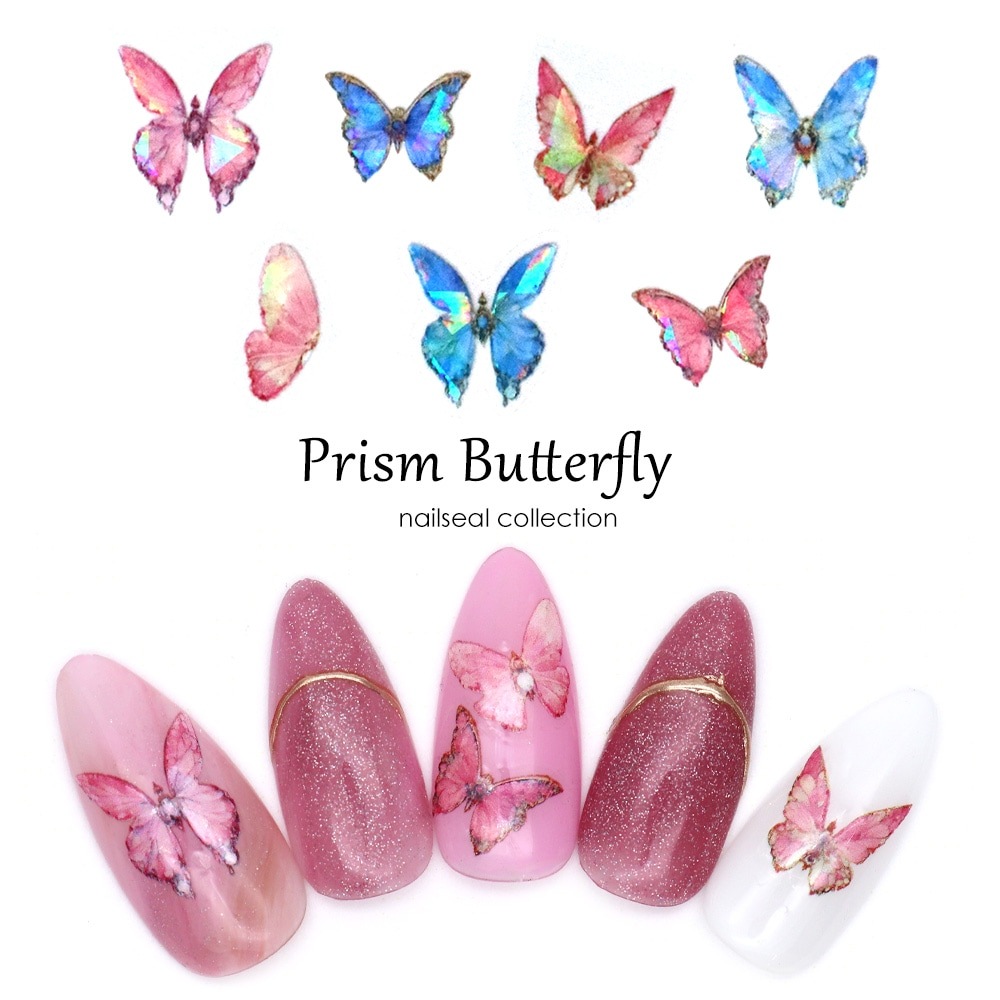 【ネコポス送料無料】ネイルシール プリズムバタフライシール [KO883/KO880] [ピンク/ブルー 青] 全2色