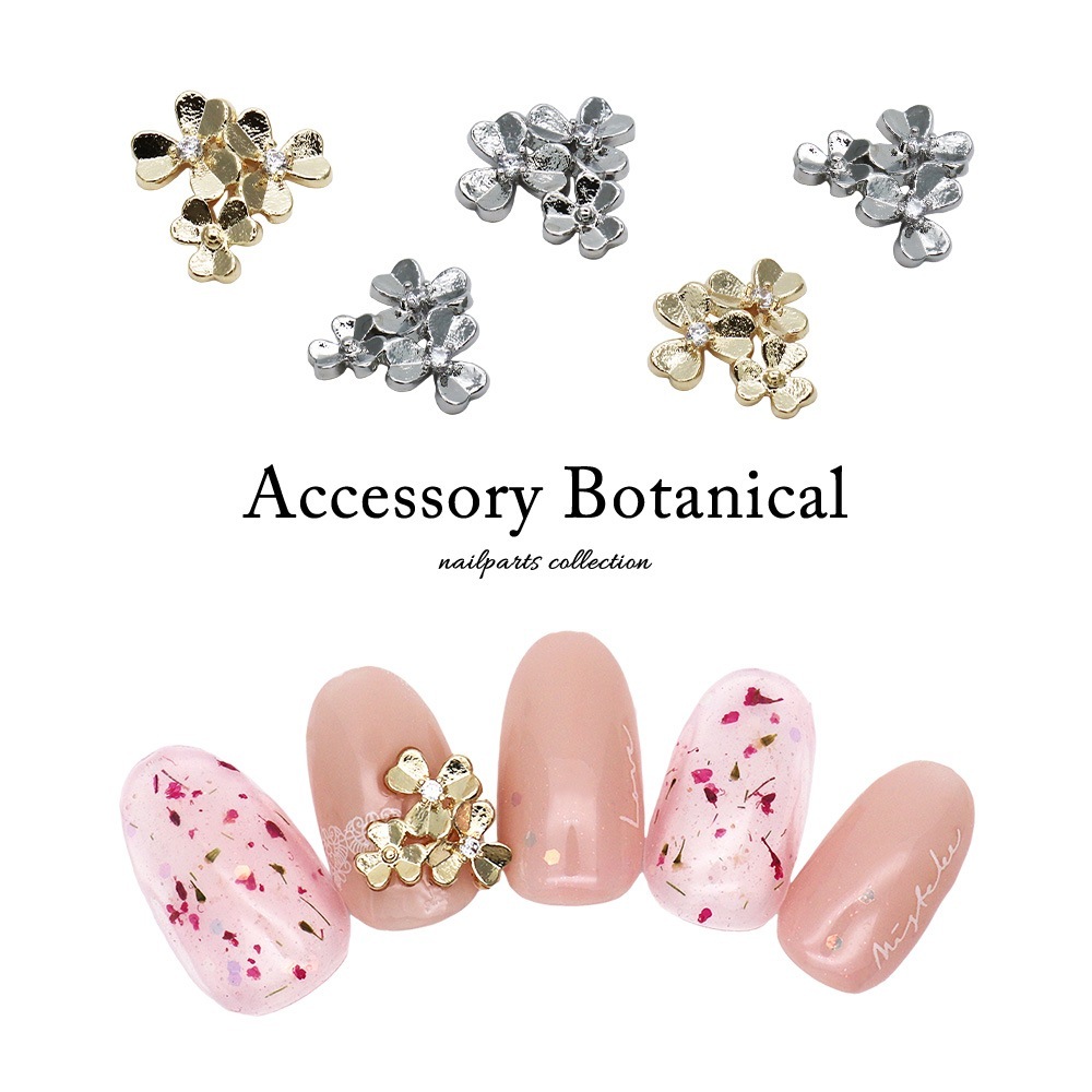 【ネコポス送料無料】ネイルパーツ ジルコニア製 アクセサリーボタニカルパーツ [ゴールド/シルバー] 全2色 2個入り