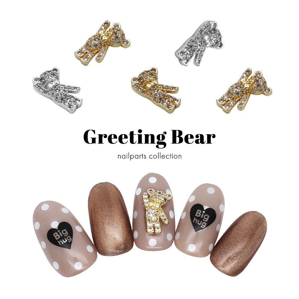 【ネコポス送料無料】ネイルパーツ ジルコニア製 グリーティングベアパーツ 全2色 [ゴールド/シルバー] 1個入