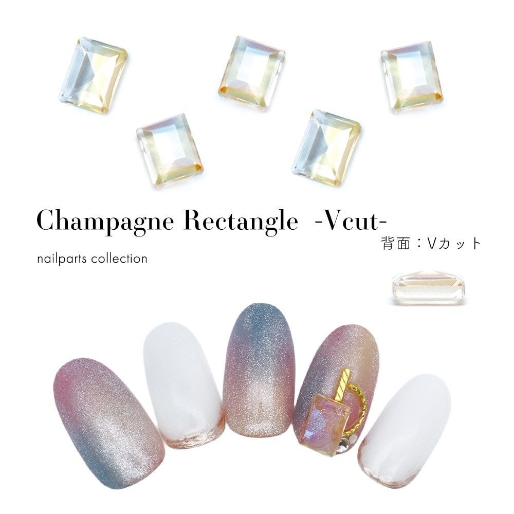 【ネコポス送料無料】ラインストーン シャンパンレクタングル Vカット 5個入り オーロラ 推し活 デコ電