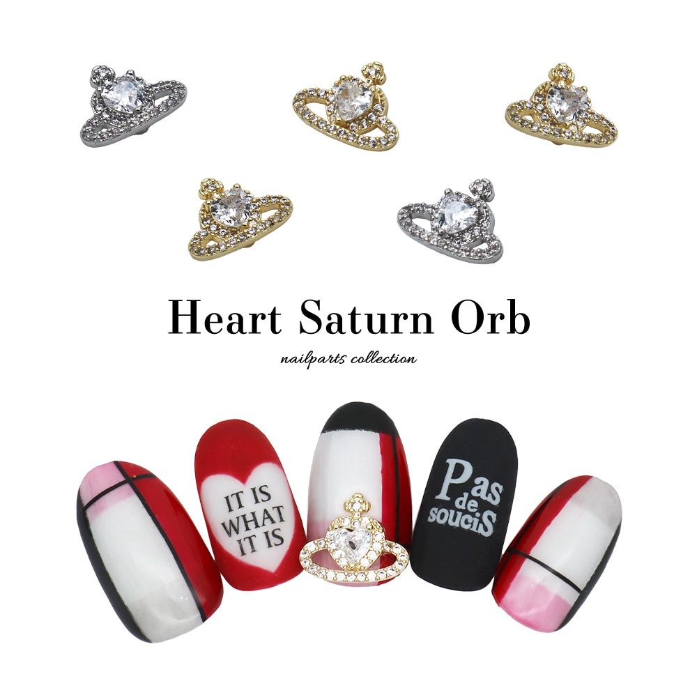 【ネコポス送料無料】ネイルパーツ ジルコニア製 ハートサターンオーブパーツ 全2色 [ゴールド/シルバー] 1個入