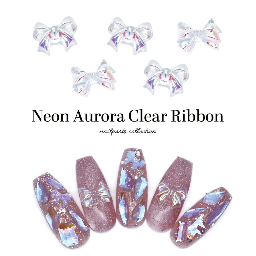 【ネコポス送料無料】ネイルパーツ ネオンオーロラクリアリボンパーツ 全2種 [5個入り]