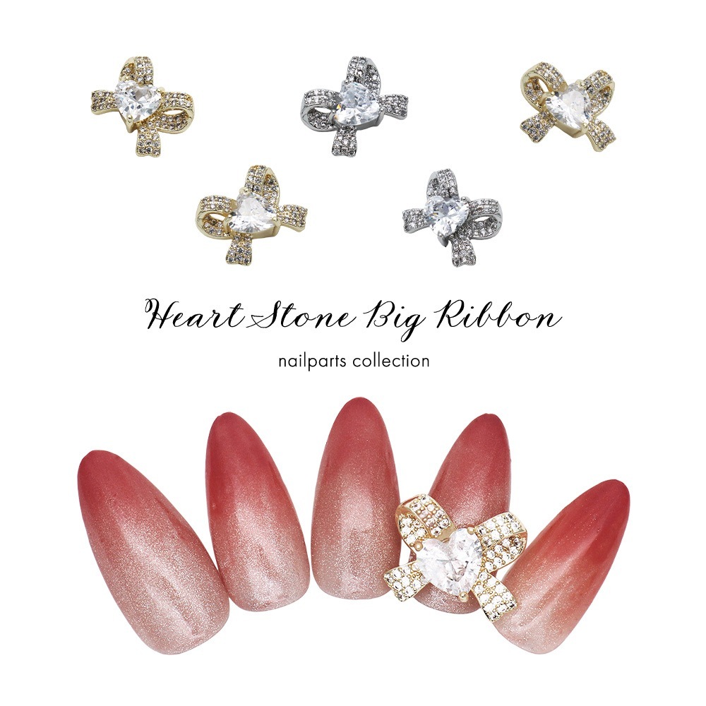 【ネコポス送料無料】ネイルパーツ ジルコニア製 ハートストーンビッグリボンパーツ [ゴールド/シルバー] 全2色 1個入り