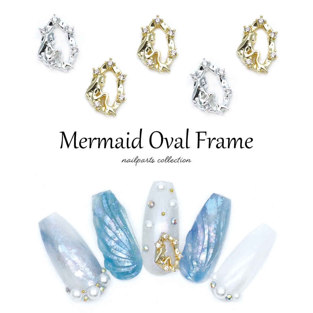 【ネコポス送料無料】ネイルパーツ ジルコニア製 マーメイドオーバルフレームパーツ 全2色 [ゴールド/シルバー] 2個入