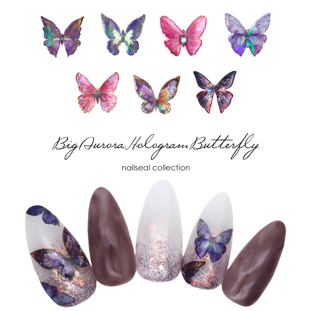 【ネコポス送料無料】ネイルシール ビッグオーロラホログラムバタフライシール [KO882/KO881] 全2種