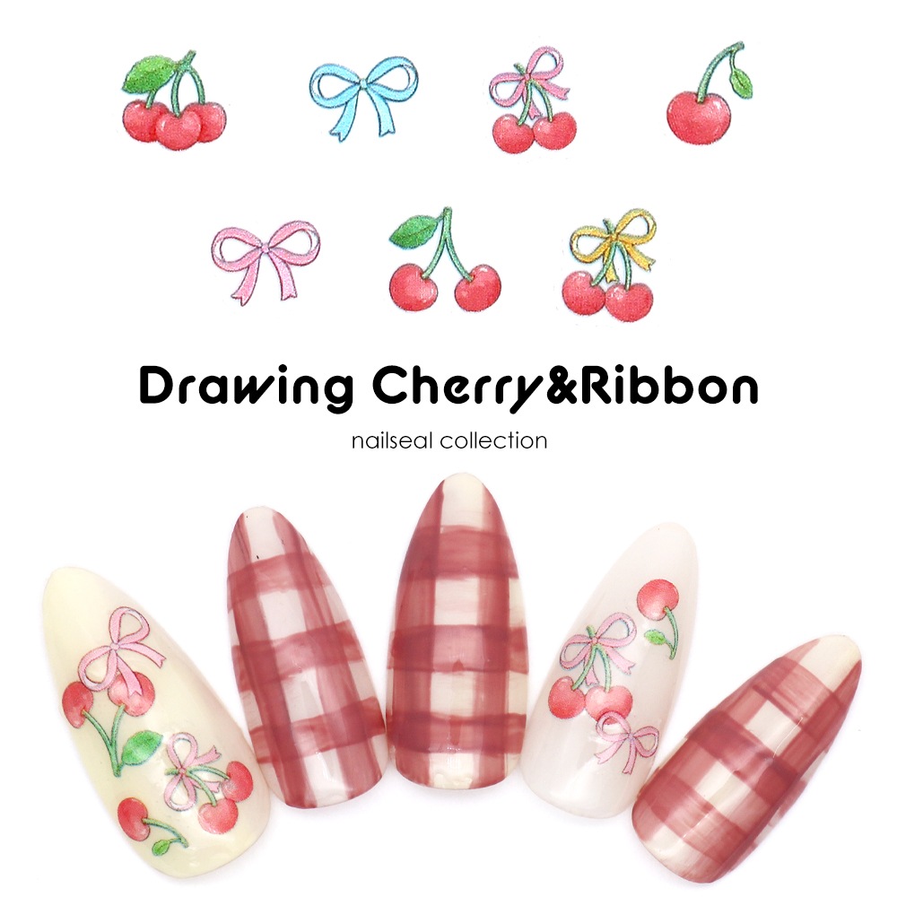【ネコポス送料無料】ネイルシール おえかきチェリー&リボンシール [KO643]