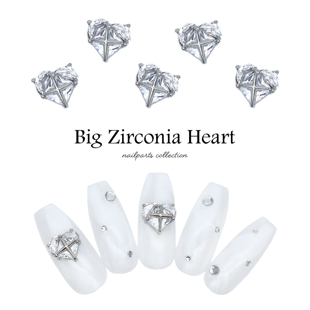 【ネコポス送料無料】ネイルパーツ ジルコニア製 ビッグジルコニアハートパーツ 1個入り