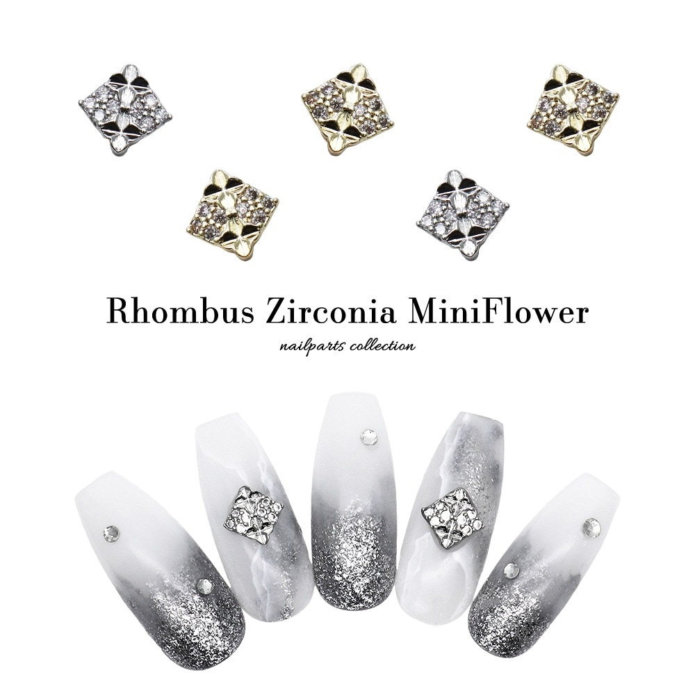 【ネコポス送料無料】ネイルパーツ ジルコニア製 ランバスジルコニアミニフラワーパーツ [ゴールド/シルバー] 全2色 2個入り