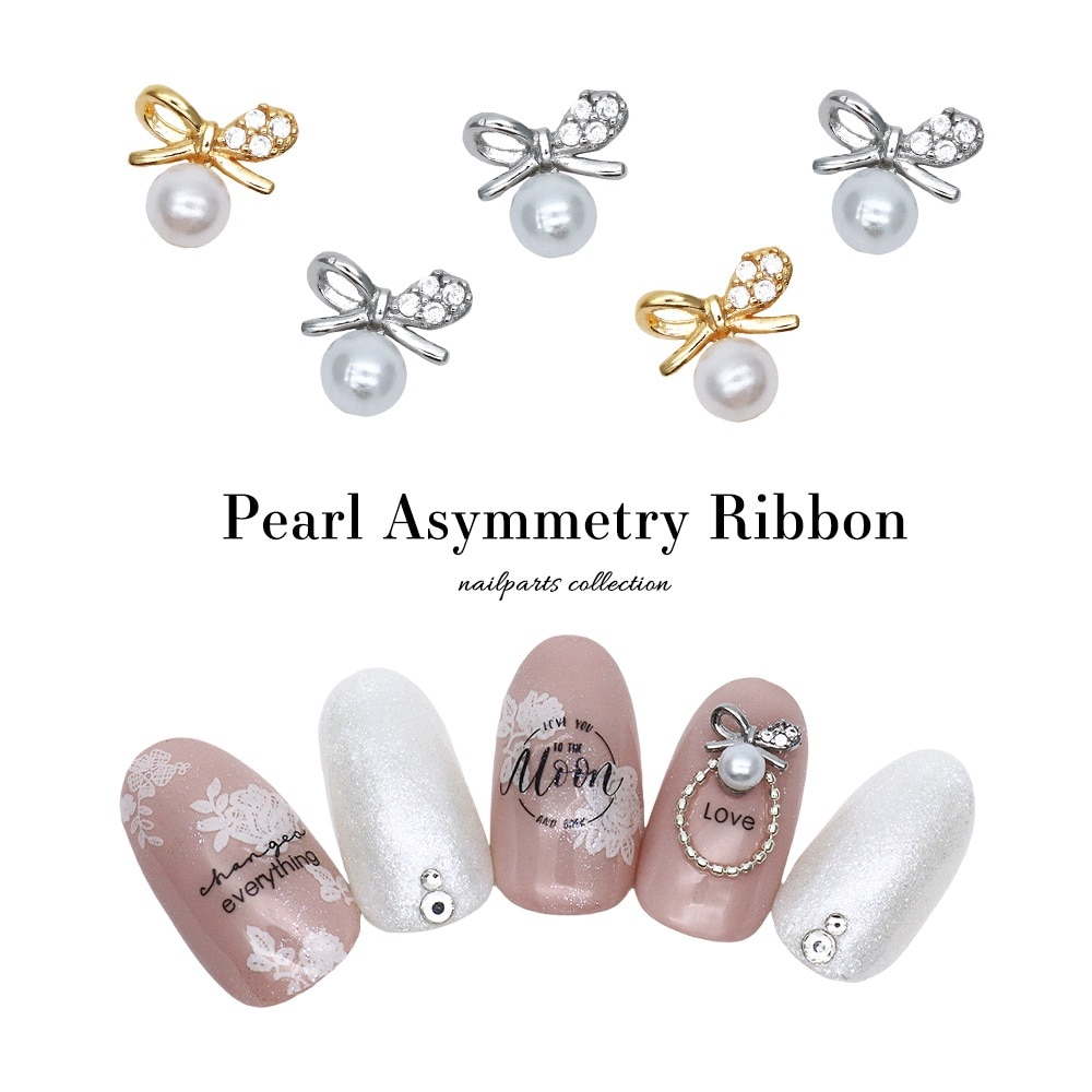 【ネコポス送料無料】ネイルパーツ ジルコニア製 パール付きアシンメトリーリボンパーツ [ゴールド 金/シルバー 銀] 全2色 ...