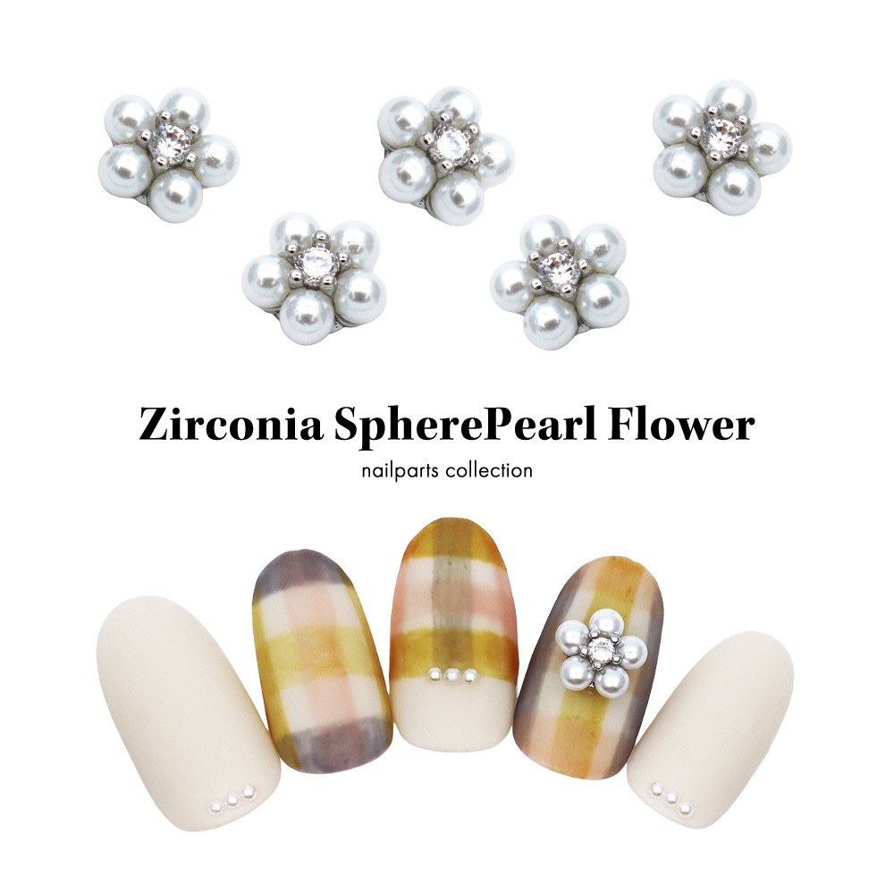 【ネコポス送料無料】ネイルパーツ ジルコニア製 ジルコニア球体パールフラワーパーツ 2個入り 推し活 デコ電