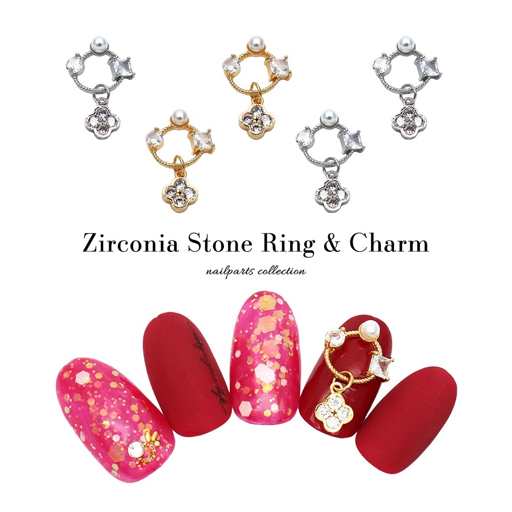 【ネコポス送料無料】ネイルパーツ ジルコニア製 ジルコニアストーンリング&チャームパーツ [ゴールド 金/シルバー 銀] 全2色...