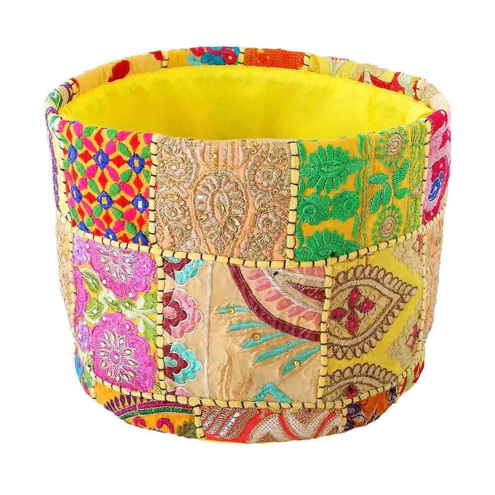 鉢カバー カンバディアパッチ バスケット イエロー 【鉢カバー Lサイズ/1個売り】