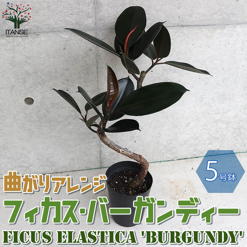 曲り仕立て ゴムの木の仲間 リビングやオフィス向きサイズ フィカス・バーガンディー【観葉植物 5号プラスチック鉢/1個売り】